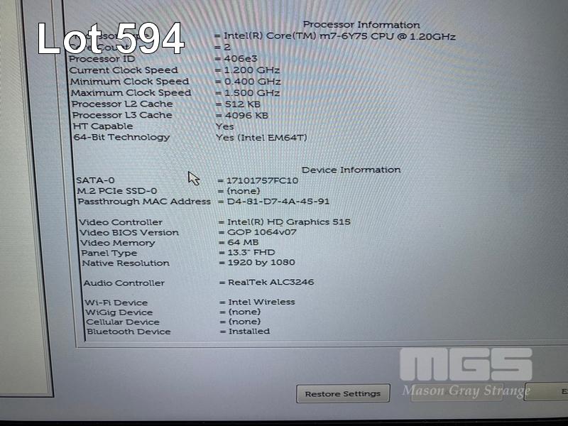 LAPTOP, DELL LATITUDE 7370, CORE m7-6Y75 (6TH GEN) @ 1.2GHz, 16GB DDR3 RAM, 512GB M.2 SSD, 13.3" WIDESCREEN (1920x1080), INTEL HD GRAPHICS 515, Wi-Fi, BLUETOOTH, WINDOWS 10 PRO INSTALLED (NO USB-C POWER SUPPLY) (NOTE: BATTERY NOT HOLDING CHARGE) S/N:8MGZ7H2