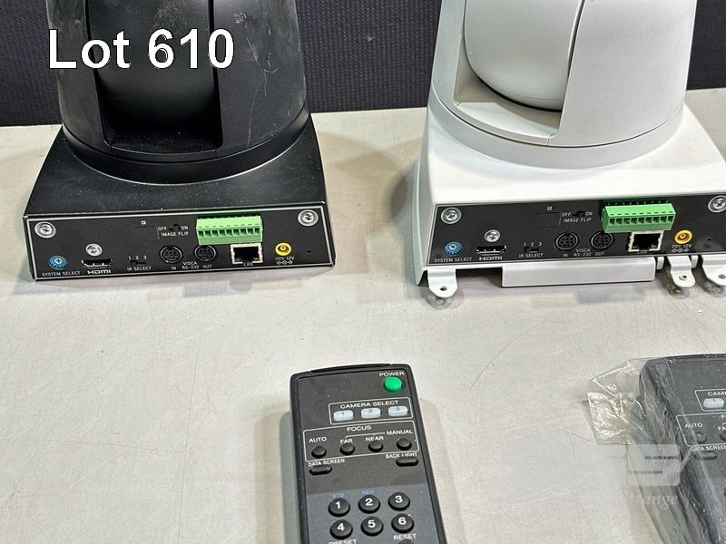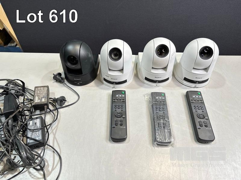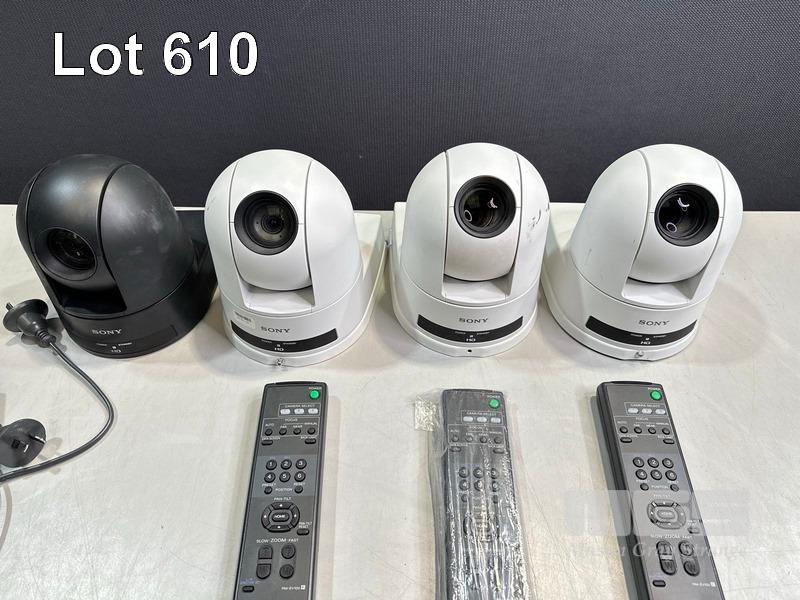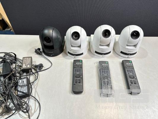 3 x SONY SRG-300H HD PTZ CAMERAS WITH REMOTES & POWER SUPPLIES 1 x SONY PTZ CAMERA (UNKNOWN MODEL) (NO REMOTE) WITH POWER SUPPLY