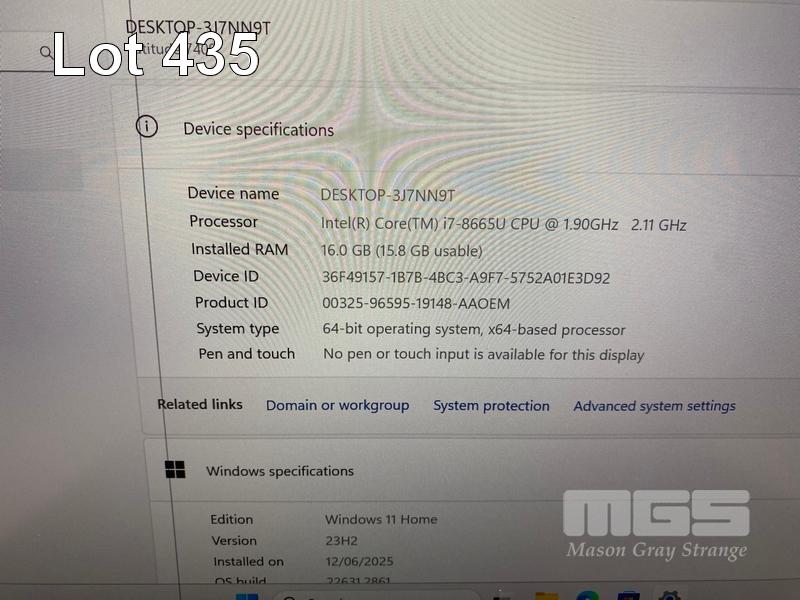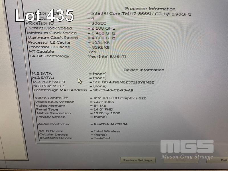LAPTOP, DELL LATITUDE 7400, CORE i7 8665U (8TH GEN) @ 1.9GHz, 16GB DDR4 RAM, 512GB NVMe M.2 SSD, 14" WIDESCREEN (1920x1080), INTEL UHD GRAPHICS 620, Wi-Fi, BLUETOOTH, WINDOWS 11 HOME INSTALLED (NO POWER SUPPLY) (NOTE: LINE ON SCREEN, BATTERY NOT HOLDING CHARGE, RUBBER PADS PART MISSING ON BOTTOM OF LAPTOP) S/N:8PWW0Z2