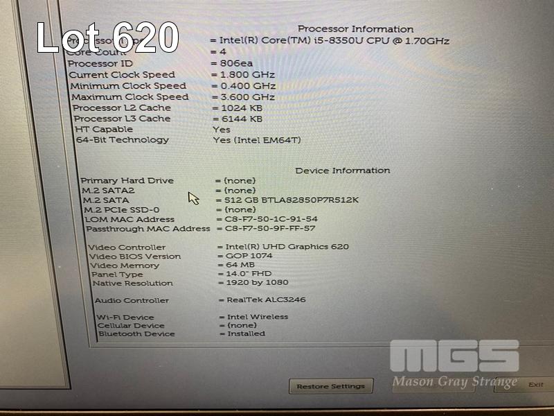 LAPTOP, DELL LATITUDE 5490, CORE i5 8350U (8TH GEN) @ 1.7GHz, 8GB DDR4 RAM, 512GB M.2 SSD, 14" WIDESCREEN (1920x1080), INTEL UHD GRAPHICS 620, Wi-Fi, BLUETOOTH, WINDOWS 11 HOME INSTALLED & POWER SUPPLY (NOTE: MARKS ON SCREEN) S/N:8JNWST2