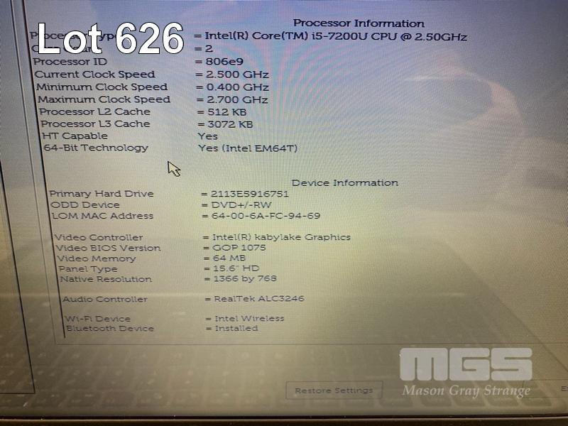LAPTOP, DELL INSPIRON 15 5567, CORE i5 7200U (7TH GEN) @ 2.5GHz, 8GB DDR4 RAM, 240GB SSD, DVD-RW, 15.6" WIDESCREEN (1366x768), INTEL HD GRAPHICS 620, Wi-Fi, BLUETOOTH, WINDOWS 10 PRO INSTALLED & POWER SUPPLY (NOTE: SCRATCH ON CASING) S/N:GLDBJ22