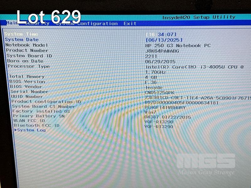 LAPTOP, HP 250 G3, CORE i3 4005U (4TH GEN) @ 1.7GHz, 4GB DDR3 RAM, 500GB SATA HDD, DVD-RW, 15.6" WIDESCREEN (1366x768), Wi-Fi, BLUETOOTH, WINDOWS 10 PRO INSTALLED & POWER SUPPLY S/N:CND5125QPK