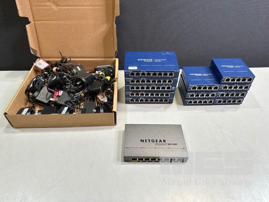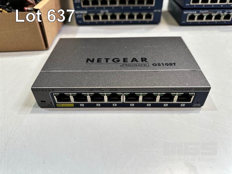 1 x NETGEAR PROSAFE GS108T 8-PORT GIGABIT SWITCH, 5 x NETGEAR PROSAFE GS108 8-PORT GIGABIT SWITCHES, 7 x NETGEAR PROSAFE GS105 5-PORT GIGABIT SWITCHES WITH POWER SUPPLIES