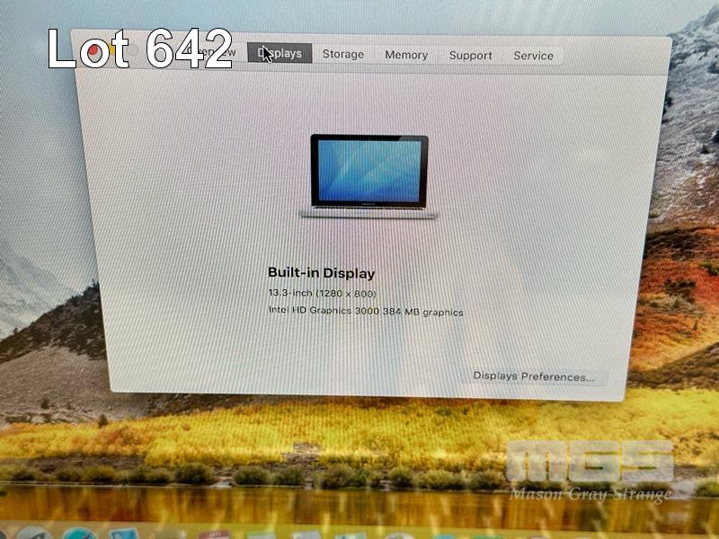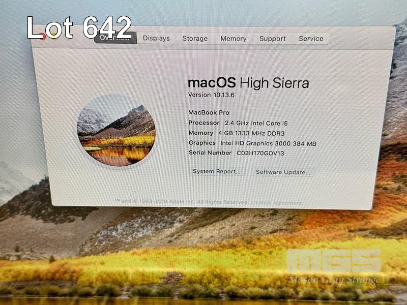 LAPTOP, APPLE MACBOOK PRO (A1278), CORE i5 2435M (2ND GEN) @ 2.4GHz, 4GB DDR3 RAM, 500GB SATA HDD, DVD-RW, 13.3" DISPLAY (1280x800), INTEL HD GRAPHICS 3000, Wi-Fi, BLUETOOTH, MAC OS 10.13 INSTALLED & POWER SUPPLY S/N:C02H170GDV13