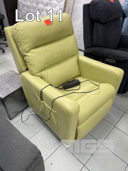 ELECTRIC RECLINER, PALE GREEN LEATHER, 240V SHOW ROOM DISPLAY MODEL