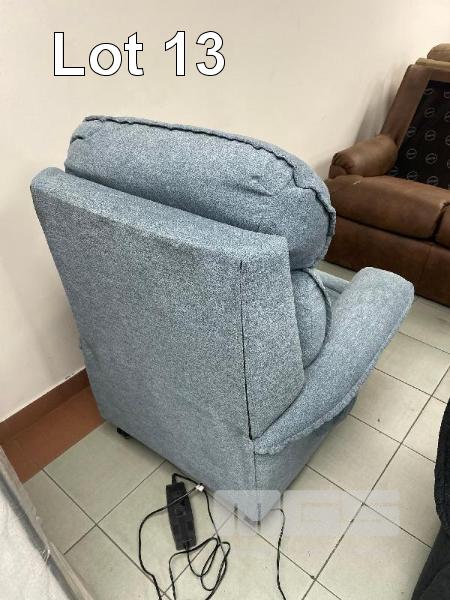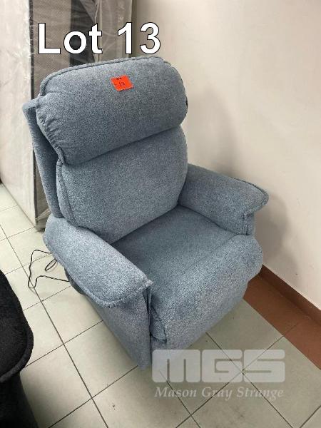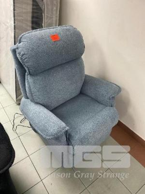 ELECTRIC RECLINER, LIGHT BLUE FABRIC, 240V SHOW ROOM DISPLAY MODEL