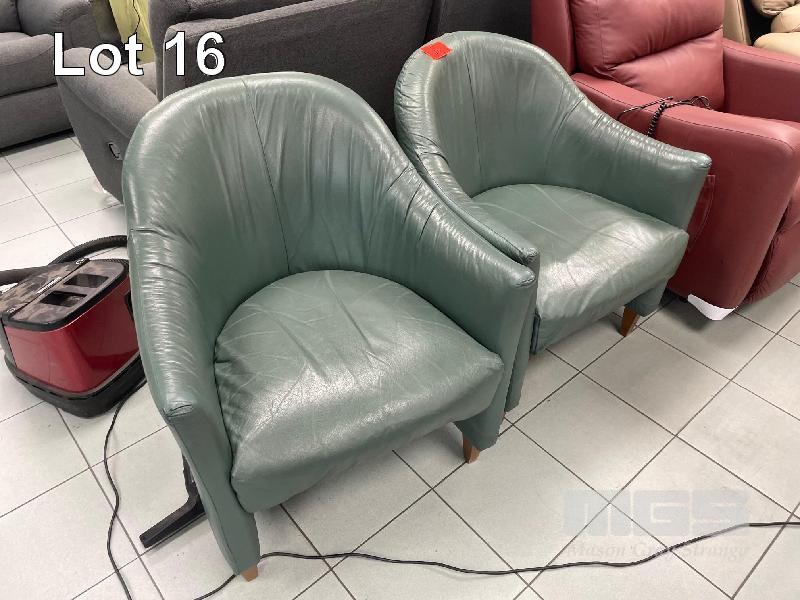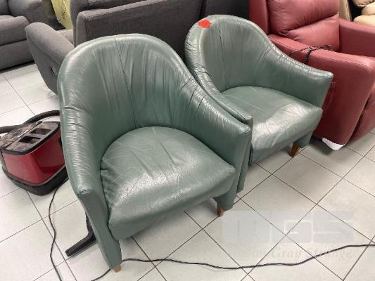 PAIR VISITORS CHAIRS, GREEN LEATHER SHOW ROOM DISPLAY MODEL