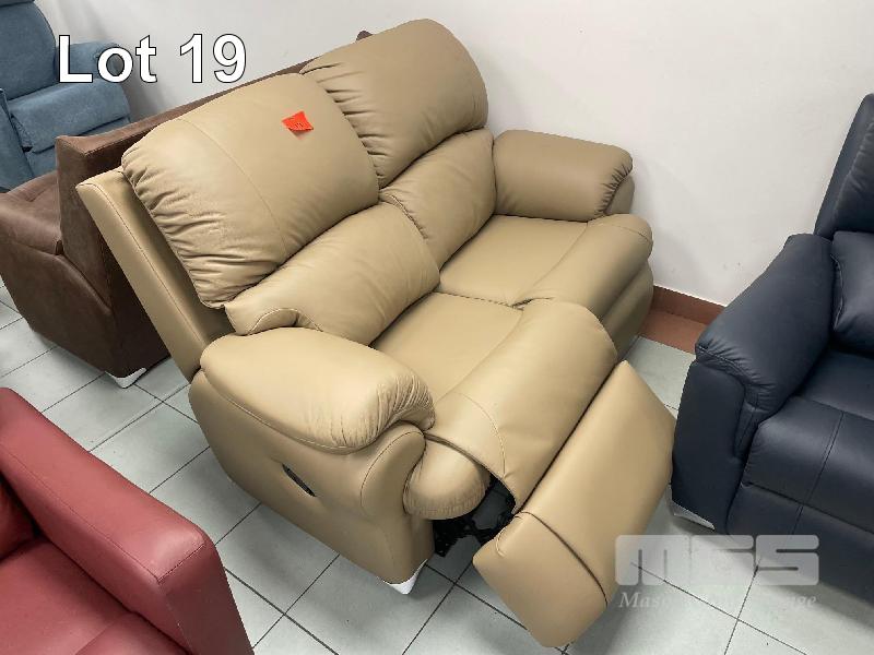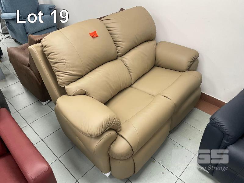 2 SEATER RECLINER, LIGHT BROWN LEATHER SHOW ROOM DISPLAY MODEL