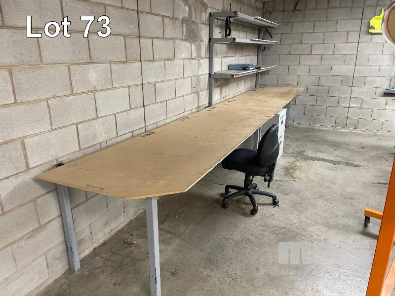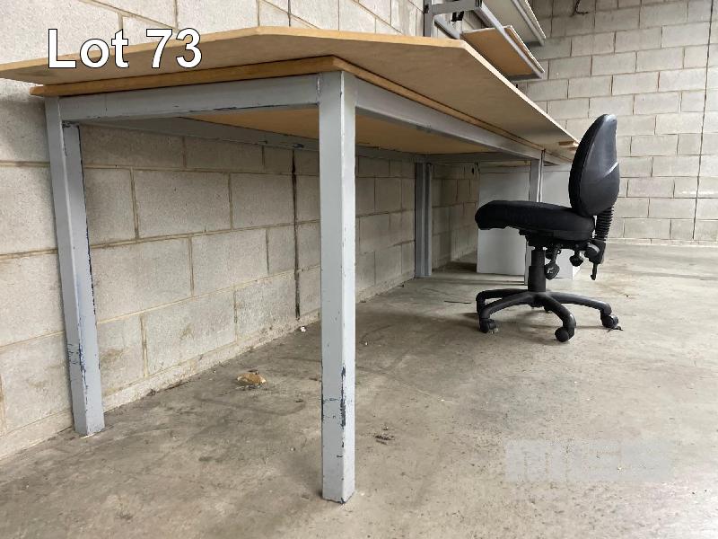 2 x STEEL FRAME BENCHES, PARTICLEBOARD TOP