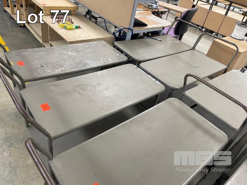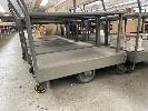 2 x STEEL STOCK TROLLEYS, 1100 x 500mm APPROX, 6 WHEEL, CENTRE PIVOT 2 TIER