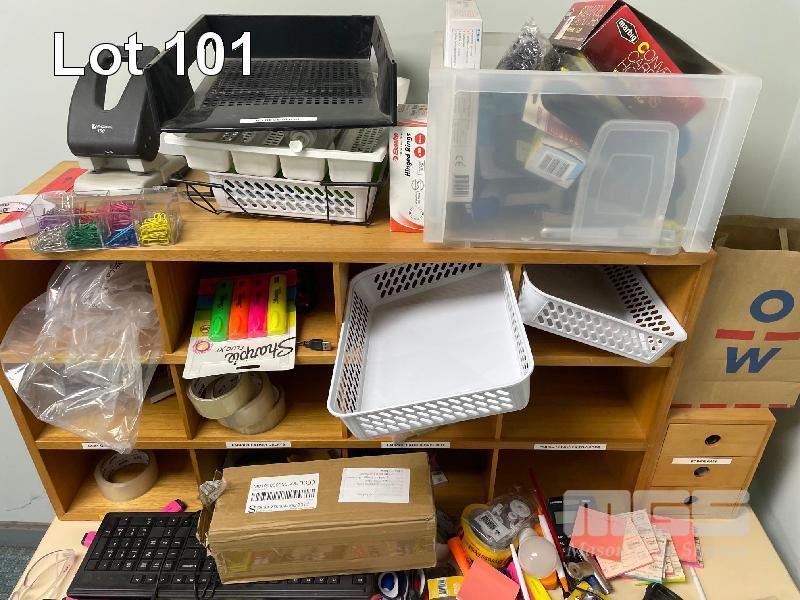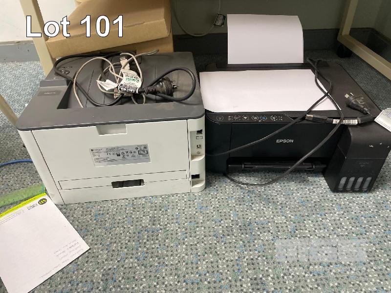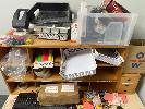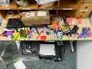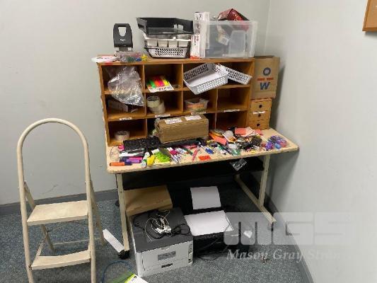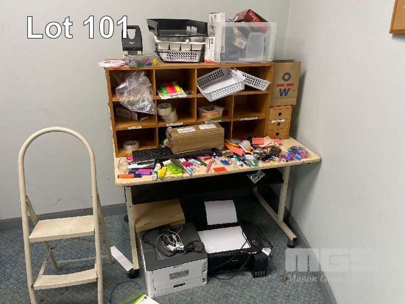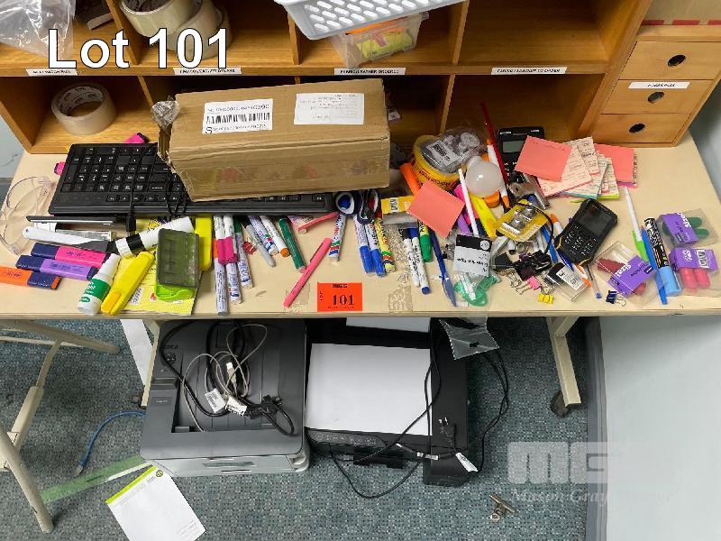 DESK & STATIONERY, 2 x PRINTERS & PEGBOARD