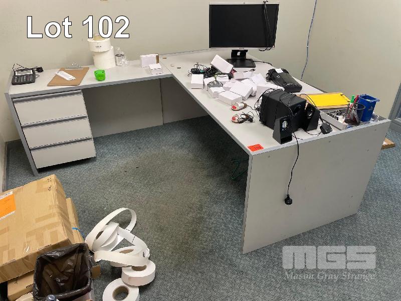 DESK & RETURN, STATIONERY, LAMINATOR, MONITOR, SPEAKERS, PROMOTIONAL COMPUTER MICE & MORE