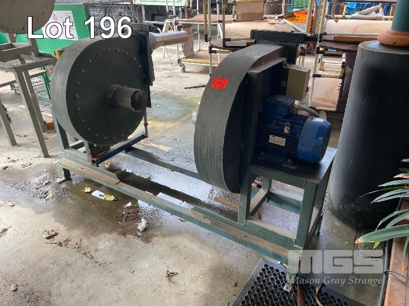 PAIR INDUSTRIAL BLOWERS MOUNTED ON STEEL FRAME WITH 2 x CMG ELECTRIC MOTORS, 3 PHASE