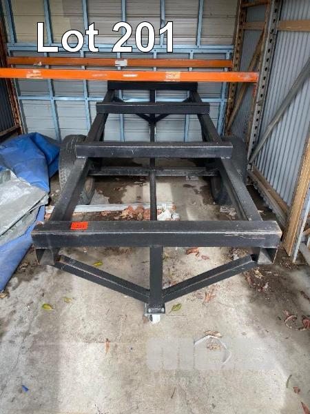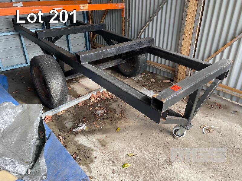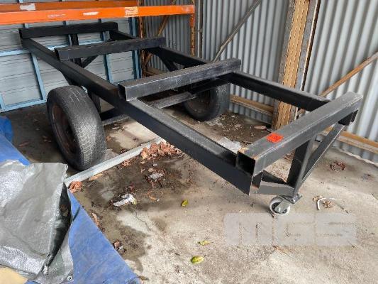 LARGE HEAVY DUTY TUBE STEEL TROLLEY, 3000 x 1100mm FRAME, CENTRE PIVOT