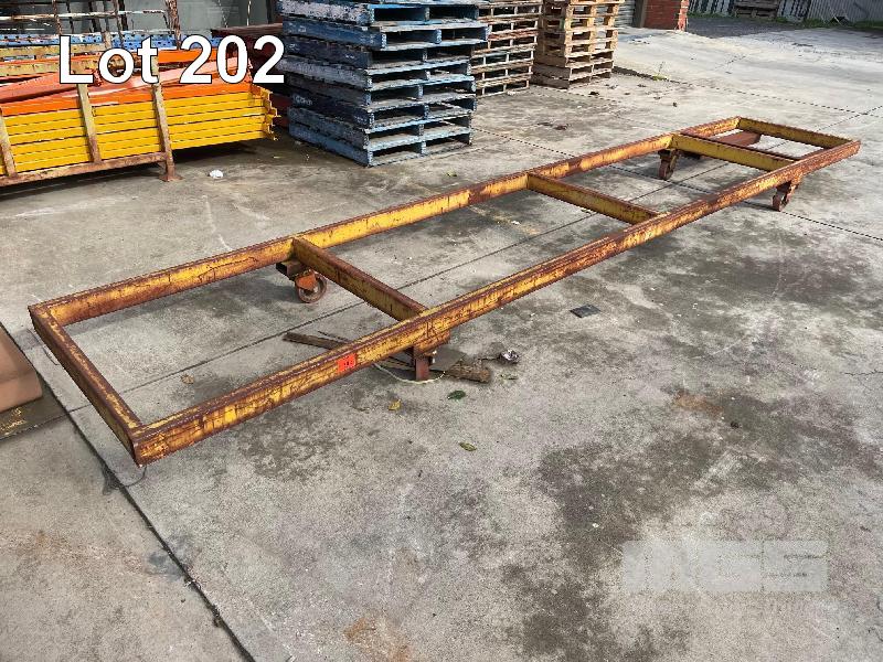 LARGE HEAVY DUTY TUBE STEEL LOWLINE DOLLY, 5500 x 1000mm WITH FORK POCKETS