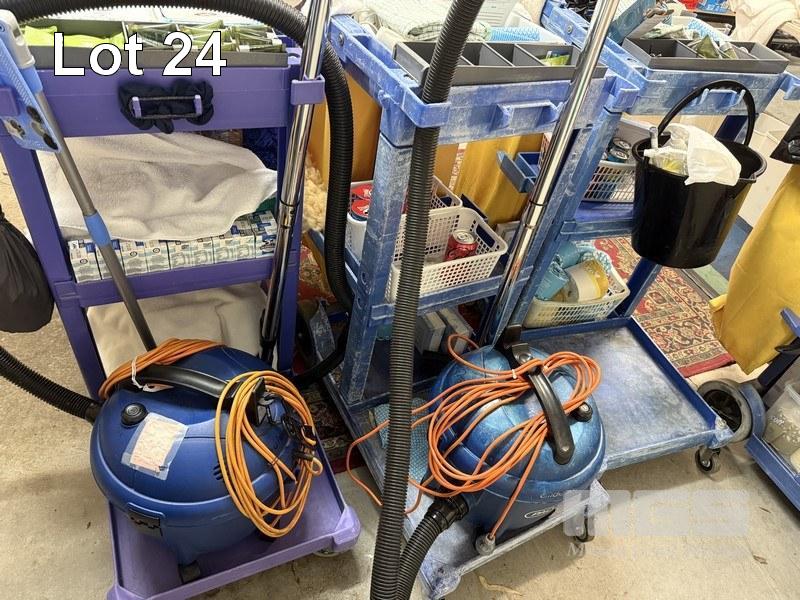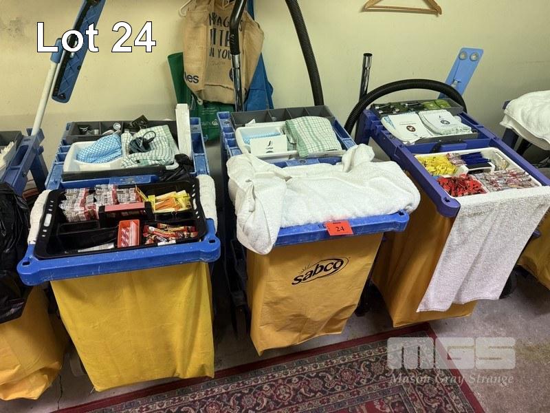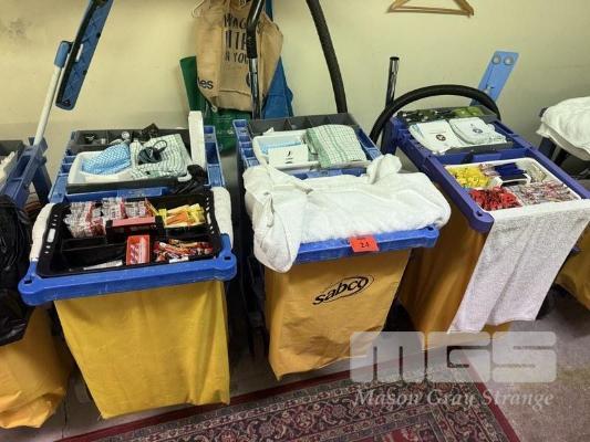 2 x CLEANERS TROLLEYS, 3 TIER WITH ROOM SUPPLIES