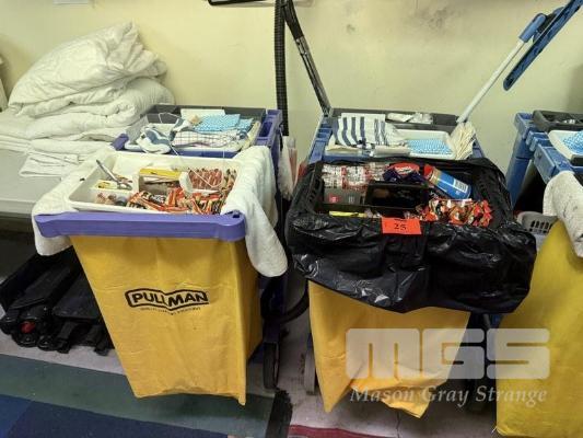 3 x CLEANERS TROLLEYS, 3 TIER WITH ROOM SUPPLIES