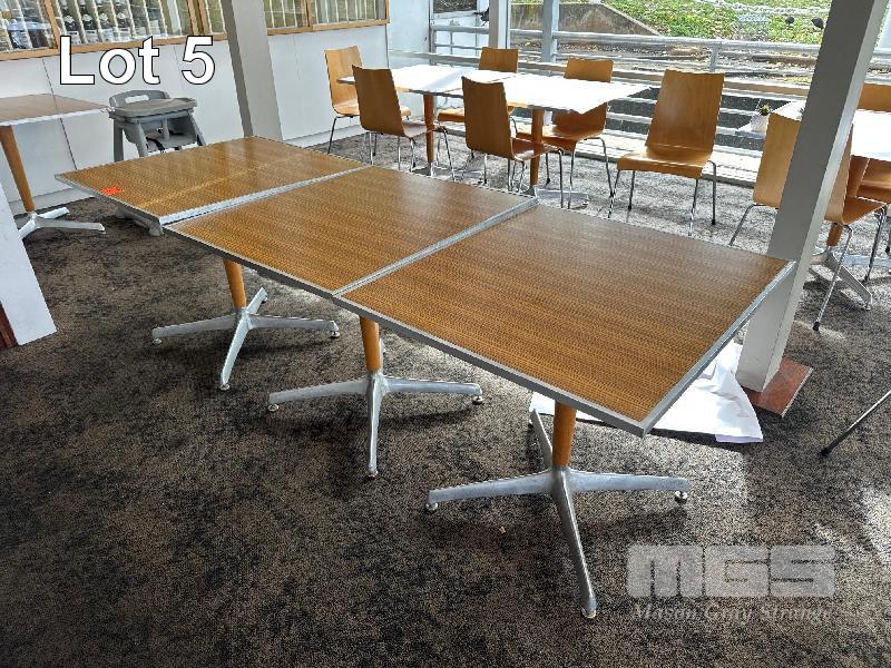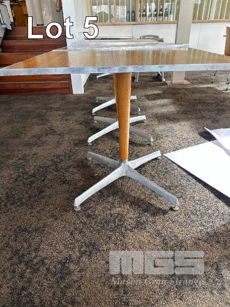 10 x CAFE TABLES, 750 X 850mm, TIMBER LAMINATE, PEDESTAL BASE,