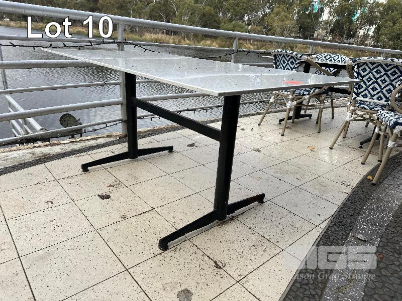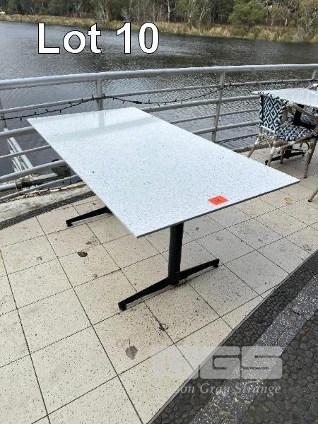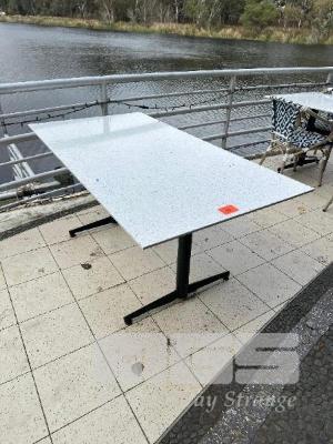 4 x STONE LOOK CAFE TABLES, 1600 x 850mm, BLACK PEDESTAL BASE