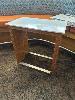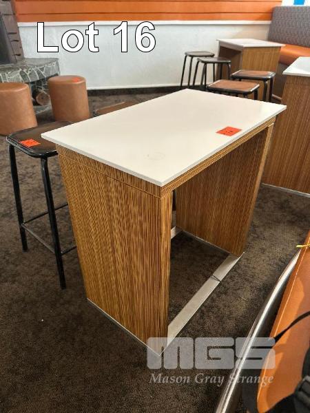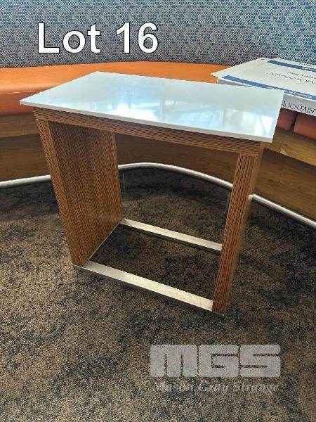 3 x STONE TOP TABLES, 750 x 450 x 750mm (H), TIMBER LAMINATE BASE