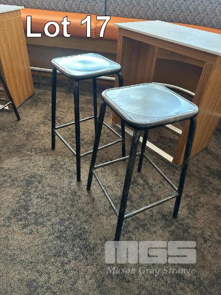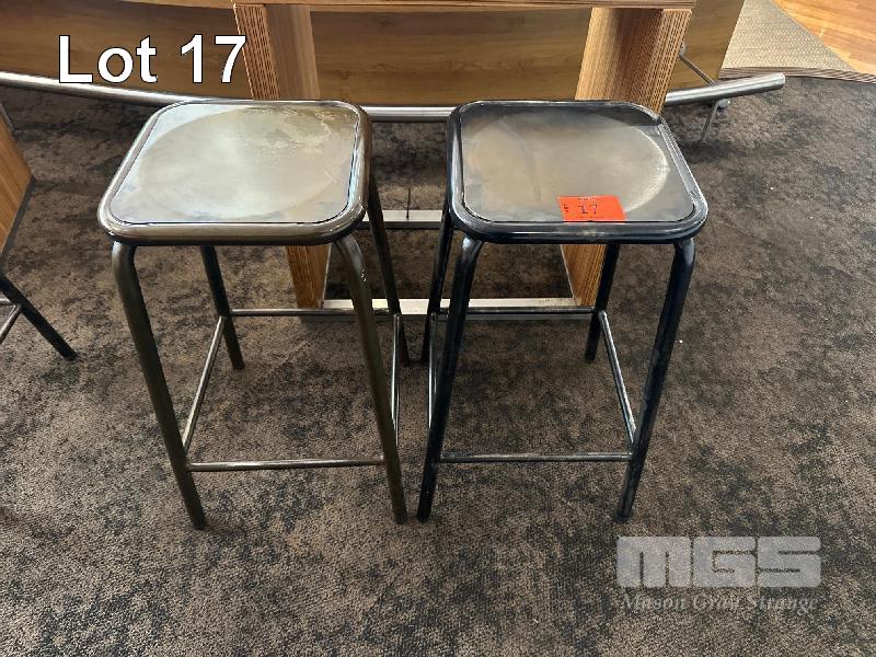 6 x BAR STOOLS, BLACK STEEL, 640mm (H)