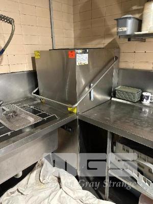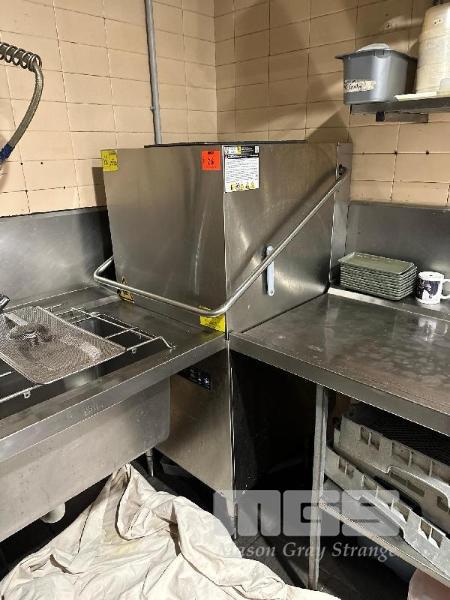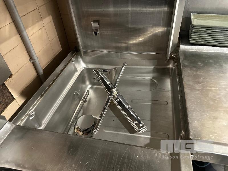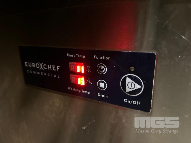 COMMERCIAL DISHWASHER, EUROCHEF 415V, HARD WIRED CORNER IN FEED RINSE STATION WITH MIXER TAP, 2100 x 1700mm, OUTFEED BENCH, 2900mm