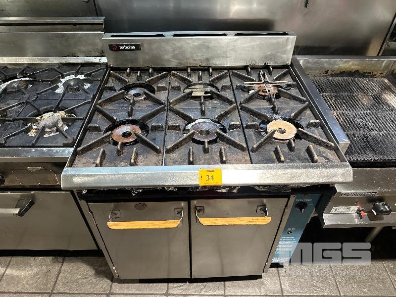 OVEN RANGE, BLUE SEAL TURBOFAN MOD: G56 5 BURNER 900 x 670mm