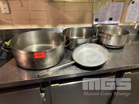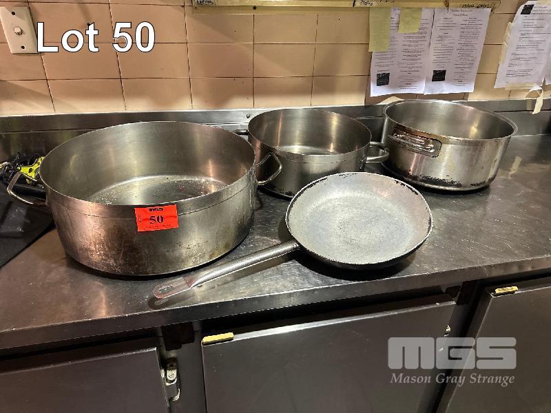 3 x LARGE STAINLESS STEEL POTS, 370-450mm (D)