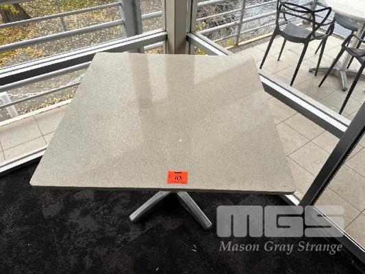 STONE TOP CAFE TABLE, 900 x 900mm, PEDESTAL BASE (LOCATED UPSTAIRS)