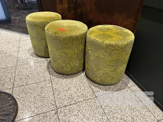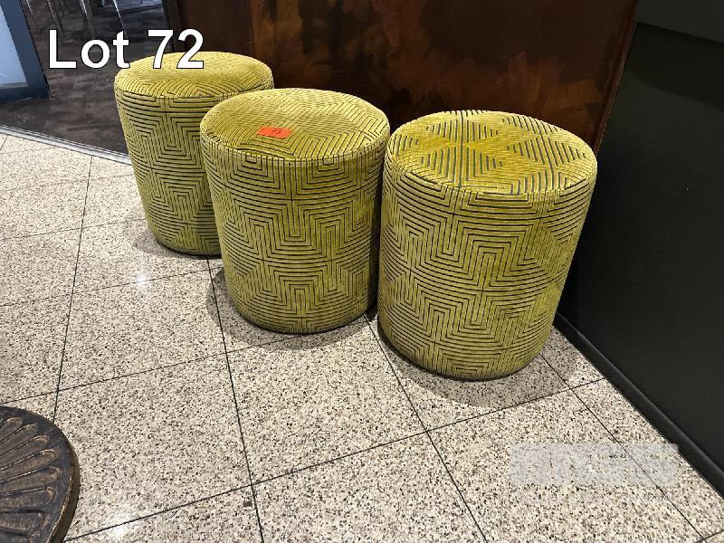 3 x GREEN CUSHIONED STOOLS, 550mm (H) (LOCATED UPSTAIRS)