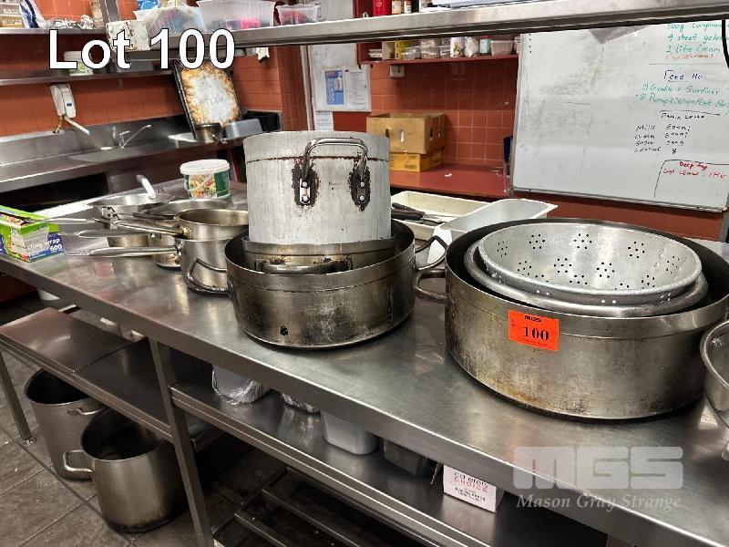 12 x STAINLESS STEEL POTS, ASSORTED SIZES (LOCATED UPSTAIRS)