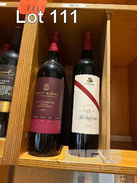 2 x ST HALLETT BLACKWELL SHIRAZ, 2019, 2 x LANGMEIL ORPHAN BANK SHIRAZ, 2021, 4 x GRANT BURGE FIFTH GENERATION CABERNET MERLOT, 1 x D'ARENBERG THE DEAD ARM SHIRAZ, 2019 & 4 x GOLDING OMBRE GAMAY, 2023 13 TOTAL (LOCATED UPSTAIRS)