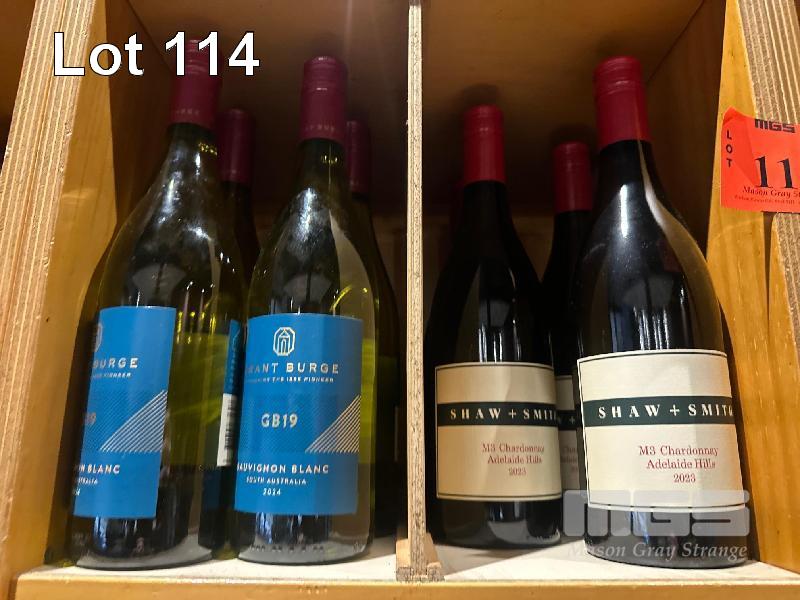 9 x GRANT BURGE GB19 SAUVIGNON BLANC, 2024, 2 x SHAW & SMITH M3 CHARDONNAY,. 5 x TWIN ISLANDS MARLBOROUGH SAUVIGNON BLANC, 2 x TURKEY FLAT ROSE, 2024 & 4 x JERICHO FIANO, 2024 20 TOTAL (LOCATED UPSTAIRS)