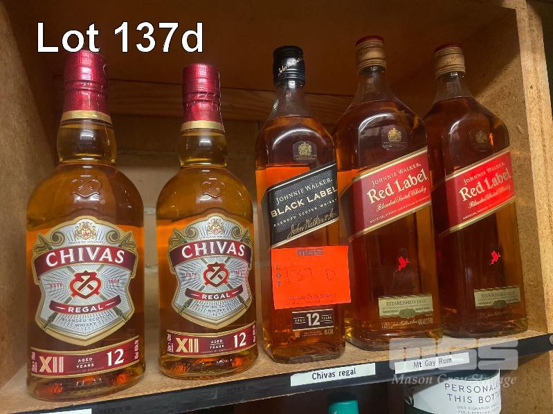 2 x CHIVAS REGAL SCOTCH WHISKEY, 700ml, 2 x JOHNNIE WALKER RED LABEL SCOTCH WHISKEY, 1.125 LITRE & JOHNNIE WALKER BLACK LABEL, 700ml