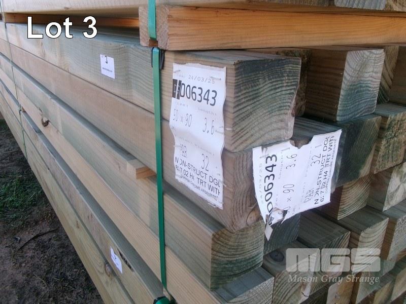 D06343 PACK OF CCA TREATED PINE TIMBER POSTS MERCH GRADE 90 X 90, 32 LENGTHS @ 3.6 METRE = 115 L/M