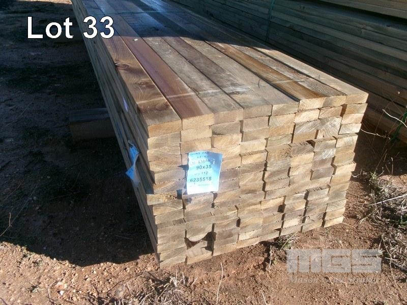6235518 PACK OF CCA TREATED PINE TIMBER MERCH GRADE 90 X 35, 112 LENGTHS, 18/4.8,17/5.4,77/6.0 = 640 L/M