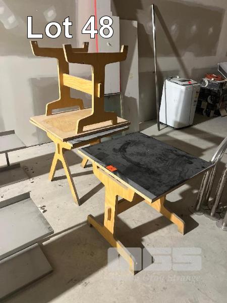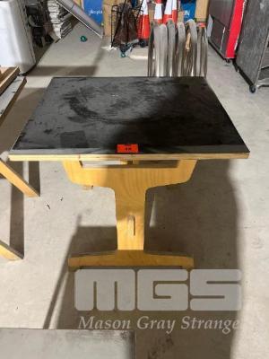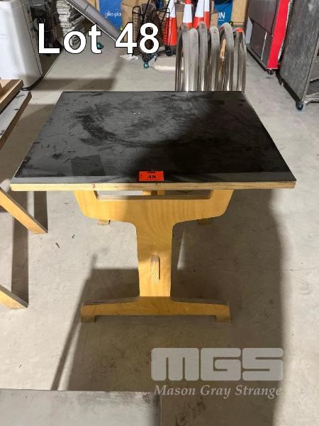 3 x PLYWOOD CAFE TABLES, BLACK TOP, 700 x 800mm