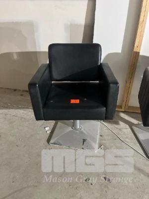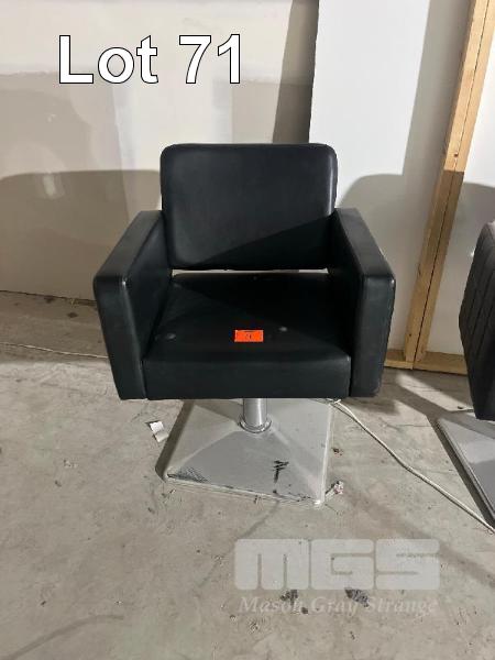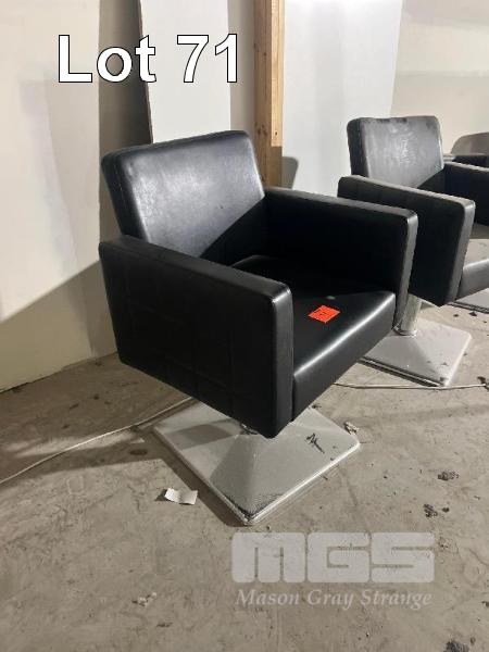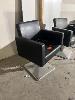 5 x BARBERS CHAIRS, BLACK VINYL, CHROME BASE, GAS LIFT SOME DAMAGED