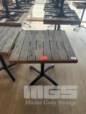 8 x TILTING TOP CAFE TABLES, TIMBER TOP, BLACK PEDESTAL BASE, 700 x 700mm