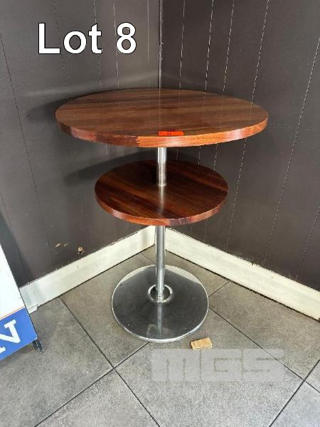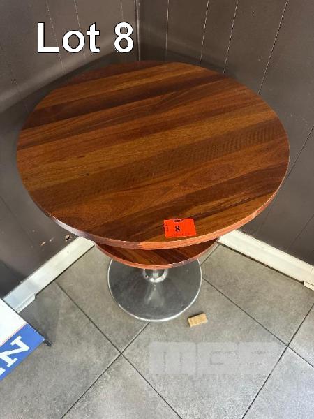2 TIER DRYBAR, TIMBER TOP, CHROME PEDESTAL BASE, 785mm (D), 1090mm (H)