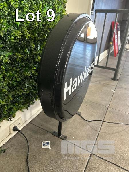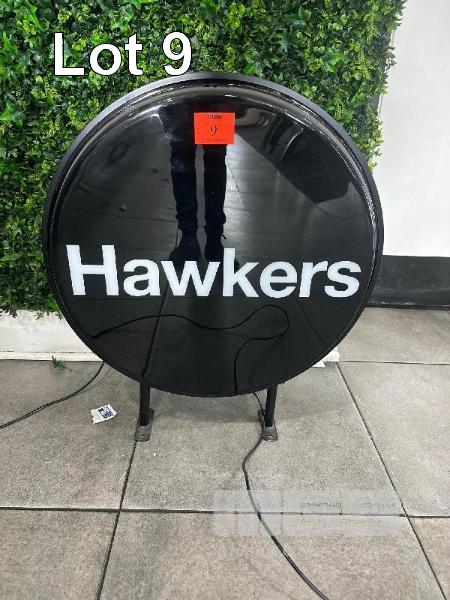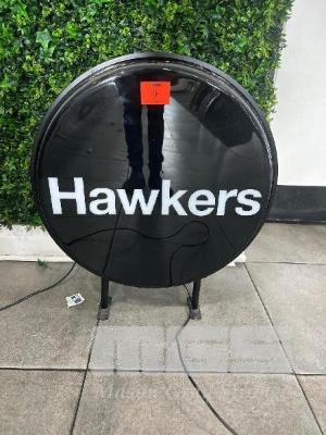 HAWKERS DOUBLE SIDED ILLUMINATED SIGN, 700mm (D), 240V 10amp NOTE: NOT LIGHTING UP
