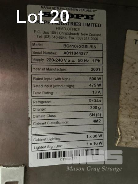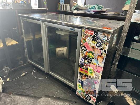 QUIRKS 2 DOOR UNDER BENCH DISPLAY FRIDGE, MOD: BC410I-2GSL, DOM: 2001, 240V 10amp