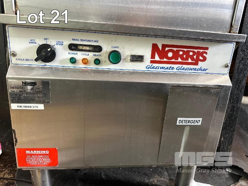 NORRIS GLASSMATE GLASSWASHER, SERIAL: 180007278, 240V 15amp