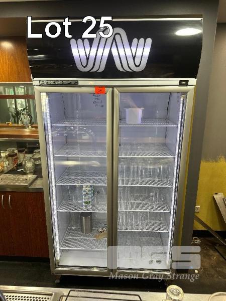 SKOPE 2 DOOR UPRIGHT DISPLAY FRIDGE, MOD: TME1000-H, DOM: 2013, ILLUMINATED, 240V 10amp