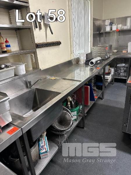 LARGE STAINLESS STEEL DISHWASHER INFEED CORNER BENCH, WITH DEEP BOWL SINK, 4240 x 640 x 920mm (H)