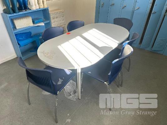 KITCHEN TABLE, LAMINEX, 6 x CHAIRS, MICROWAVE & CONTENTS OF CUPBOARDS WITH LEMAIR BAR FRIDGE