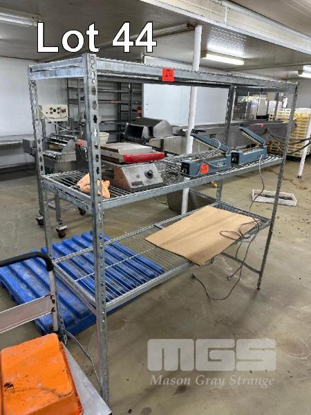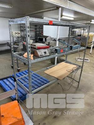 STEEL MODULAR GALV RACK, MESH SHELVES, SUIT COOL ROOM, PEDESTAL FAN & TROLLEY