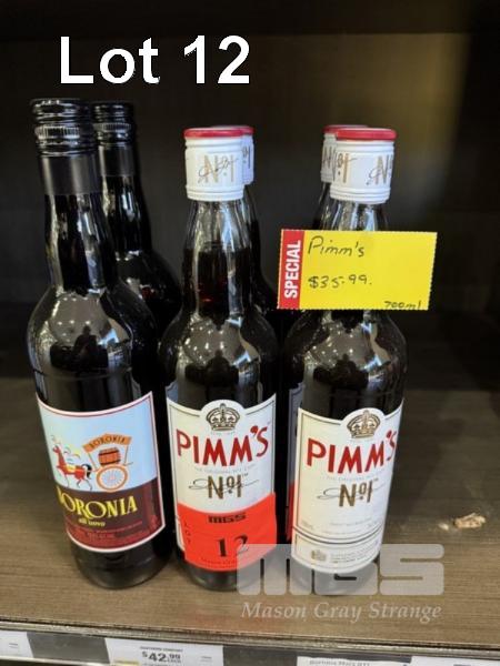 6 x PIMMS No 1, 700ml, 5 x BORONIA "ALL VOVO", 750ml & 4 x APEROL, 700ml