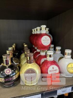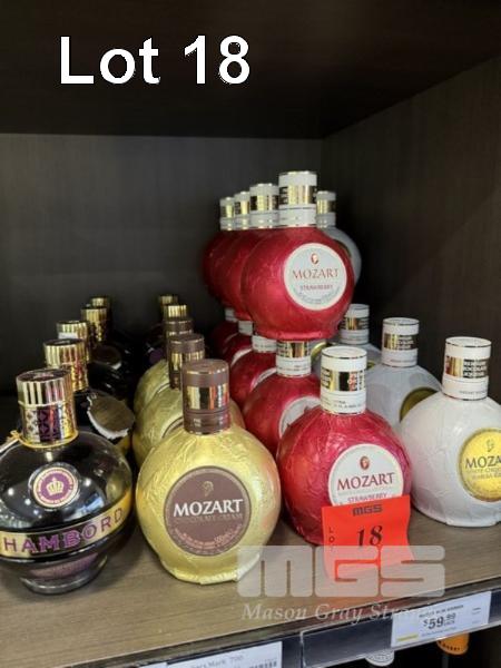 LIQUEURS: 7 x MOZART WHITE CHOCOLATE VANILLA CREAM, 500ml, 9 x MOZART WHITE CHOCOLATE STRAWBERRY, 500ml 5 x MOZART CHOCOLATE CREAM, 500ml & 5 x CHAMBORD BLACK RASPBERRY, 500ml