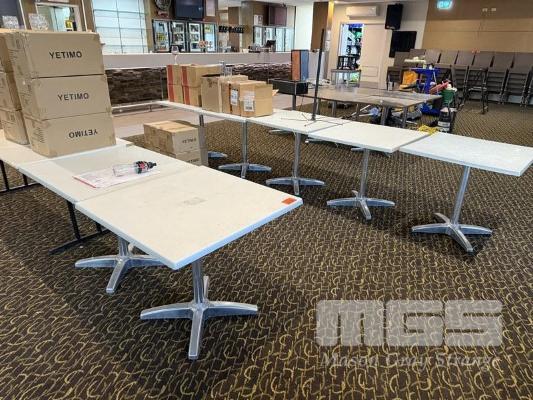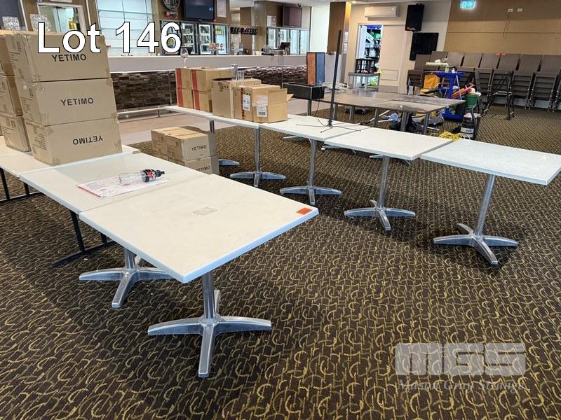 7 x ALFRESCO TABLES, 80 x 80cm, ACRYLIC TOPPED & 1 x TRESTLE, 180cm